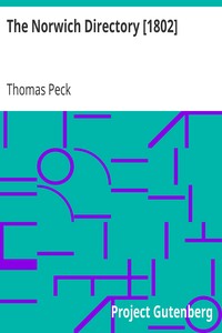 "The Norwich Directory" by Thomas Peck is a reference work written in the early 19th century. This publication serves as a comprehensive directory of the inhabitants of Norwich, providing an alphabetical list of residents alongside their addresses, professions, and trades. Additionally, it includes a concise history of Norwich and highlights public improvements intended to enhance the city's infrastructure and livability. At the start of the directory, Peck discusses the necessity of such