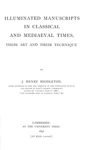 "Illuminated Manuscripts in Classical and Mediaeval Times, Their Art and Their Technique" by J. Henry Middleton is a historical account written in the late 19th century. This work explores the evolution and artistry of illuminated manuscripts, tracing their development from classical antiquity through the Middle Ages. The book focuses on the various methods, materials, and techniques employed in manuscript creation, highlighting the significance of illumination as an art form. The opening of