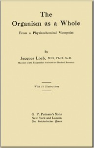"The Organism as a Whole, from a Physicochemical Viewpoint" by Jacques Loeb is a scientific publication written in the early 20th century. The book explores the intricate relationships within living organisms, specifically addressing the physicochemical nature of biological processes and how these elements contribute to the unity and functioning of an organism as a whole. It reflects a time of significant advancements in biology and genetics, particularly relating to heredity and evolution.