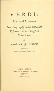 "Verdi: Man and Musician" by Frederick James Crowest is a biographical account written in the late 19th century. The book examines the life and career of the illustrious Italian composer Giuseppe Verdi, with a particular focus on his experiences in England and his significant impact on the world of music. It portrays Verdi not just as a prolific composer, but also as a person shaped by his early life and the circumstances