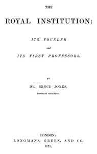 | Title | The Royal Institution: Its Founder and First Professors |
