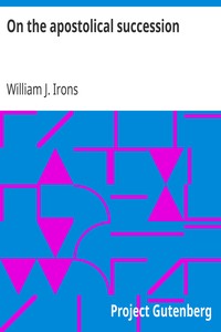 "On the Apostolical Succession" by William J. Irons is a theological work written during the mid-19th century. This book presents a series of lectures focused on the origins, nature, and function of the Christian Ministry, particularly examining the concept of apostolic succession and its significance in contemporary religious practice. The author aims to clarify and define thoughts surrounding the authority and continuity of the ministry within the context of Christian teachings. In