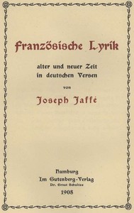 "Französische Lyrik alter und neuer Zeit in deutschen Versen" by Joseph Jaffé is a collection of poetry written in the early 20th century. This work showcases adaptations of classical and contemporary French lyrical poetry into German verses, highlighting the artistic nuances involved in translation while maintaining the essence of the original pieces. The collection includes works from notable poets like François Villon, Clément Marot, and Victor Hugo, among others. At the start