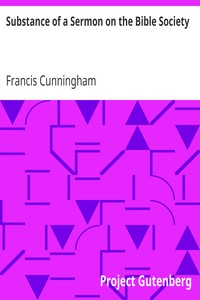 "Substance of a Sermon on the Bible Society" by Francis Cunningham is a religious discourse likely written in the early 19th century. This sermon reflects on the importance of the British and Foreign Bible Society, emphasizing the need for the widespread distribution of the Bible and promoting unity among different Christian denominations. The text exemplifies the societal role of religious organizations during this time period, which plays a significant part in the