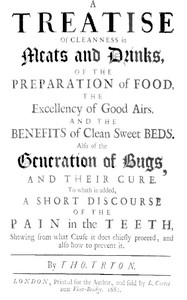 A Treatise of Cleanness in Meats and Drinks, of the Preparation of Food, the Excellency of Good Airs, and the Benefits of Clean Sweet Beds. Also of the Generation of Bugs, and Their Cure. To Which Is Added, a Short Discourse of the Pain in the Teeth, Shewing What Cause It Does Chiefly Proceed, and Also How to Prevent It. |