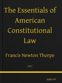 "The Essentials of American Constitutional Law" by Francis Newton Thorpe is a scholarly treatise on constitutional law written in the early 20th century. This work provides a comprehensive analysis of the principles underlying American constitutional law, emphasizing the judgment of the courts and the roles of various governmental bodies in interpreting and applying the Constitution. The opening of the book lays out the foundational principle that the Constitution is the supreme law