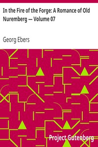 "In the Fire of the Forge: A Romance of Old Nuremberg — Volume 07" by Georg Ebers is a historical novel written in the late 19th century. The narrative unfolds in the vibrant, albeit tumultuous atmosphere of medieval Nuremberg, centering on the lives and struggles of its characters. The story follows the Ortlieb sisters, Els and Eva, as they navigate social turmoil, familial obligations, and budding romances amidst the backdrop of city