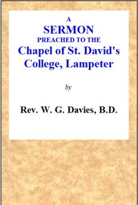 "Welsh Nationality, and How Alone It is to Be Saved: A Sermon by Davies" by Rev. W. G. Davies is a theological sermon published in the early 1870s, following its delivery in 1870. This discourse engages with the social and religious condition of the Welsh people, emphasizing the necessity of spiritual growth and the dangers of stagnation in knowledge and understanding. The book primarily addresses issues of national identity, cultural preservation, and