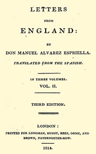 "Letters from England, Volume 2 (of 3)" by Robert Southey is a fictitious travel account written in the early 19th century. The work is presented as letters from an imaginary Spanish nobleman, Don Manuel Alvarez Espriella, who travels through England, observing its culture, landscapes, and institutions. The book provides a unique perspective on English society, revealing both its virtues and its vices through the eyes of an outsider. The beginning of the