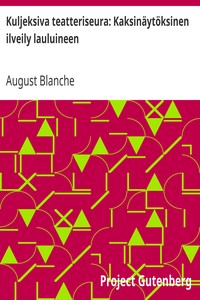 "Kuljeksiva teatteriseura: Kaksinäytöksinen ilveily lauluineen" by August Blanche is a comedic play written in the early 20th century. The book centers around a traveling theater troupe that faces various challenges as they attempt to perform their play in a small town, highlighting themes of ambition, creativity, and the struggles of artistic life. The work combines elements of humor with the dynamics of a theatrical company, showcasing the relationships between the characters. The