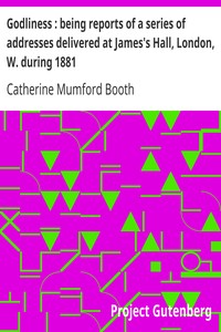 "Godliness: Being Reports of a Series of Addresses Delivered at James's Hall, London, W." by Mrs. Catherine Booth is a collection of spiritual addresses delivered in the early 1880s, likely during the Victorian era. The work aims to provide insight into Christian doctrine, emphasizing practical teachings on faith, repentance, and the nature of true charity. The addresses serve not only as sermons but as exhortations to ignite religious enthusiasm and personal commitment