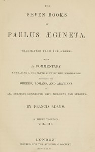 | Title | The seven books of Paulus Ægineta, volume 3 (of 3) : translated from the Greek: with a commentary embracing a complete view of the knowledge possessed by the Greeks, Romans, and Arabians on all subjects connected with medicine and surgery |
