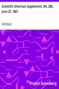 "Scientific American Supplement, No. 286, June 25, 1881" is a scientific publication compiled by Various authors during the late 19th century. This periodical features diverse topics that focus on advancements and discoveries in fields such as engineering, mechanics, electricity, natural history, and medicine. It illustrates the remarkable industrial and scientific growth of the era, providing readers with insights into contemporary technology and innovations. The opening of this supplement presents a diverse range