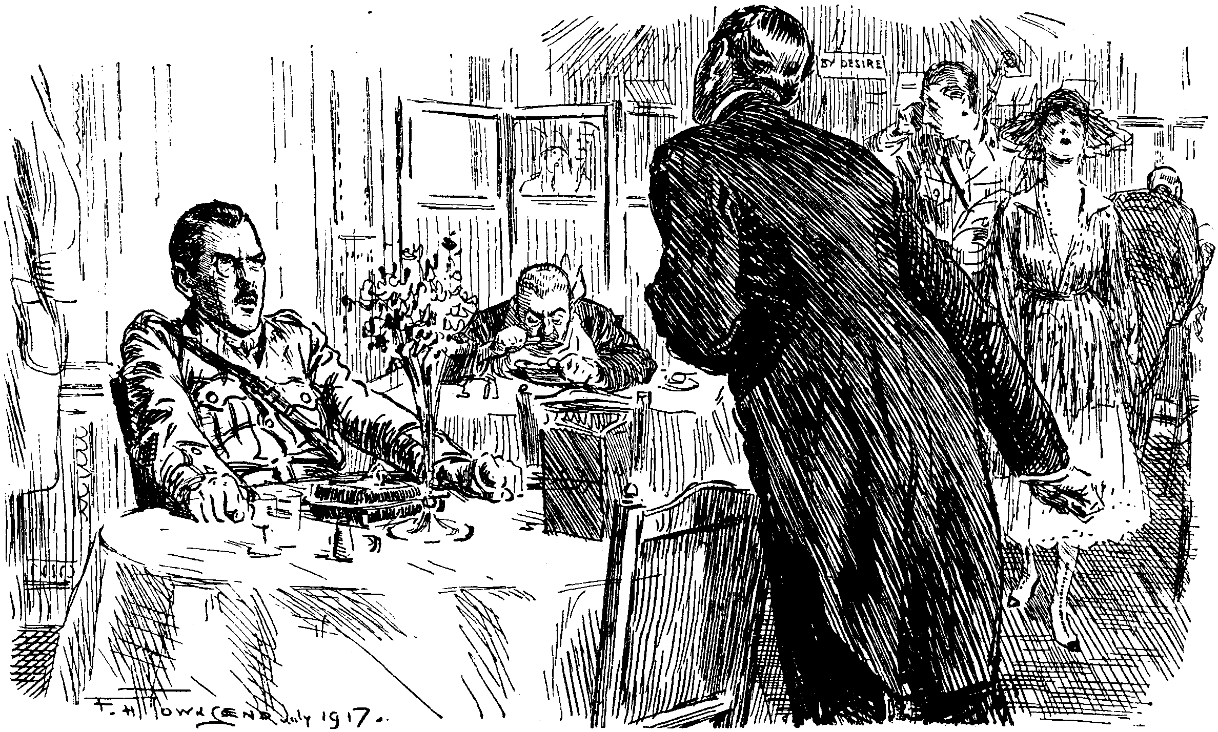 "Where indeed, Sir!" the man replied. "It is all so strange. One day it is arranged that he shall take over the restaurant and its staff, and on the next he come to say 'Good-bye' to us all, and then leave for France. Oh, it is drôle. So good a business man to lose the chance that comes once only in a life! He is too old to fight. Yet who knows? Maybe he heard of something better out there...."