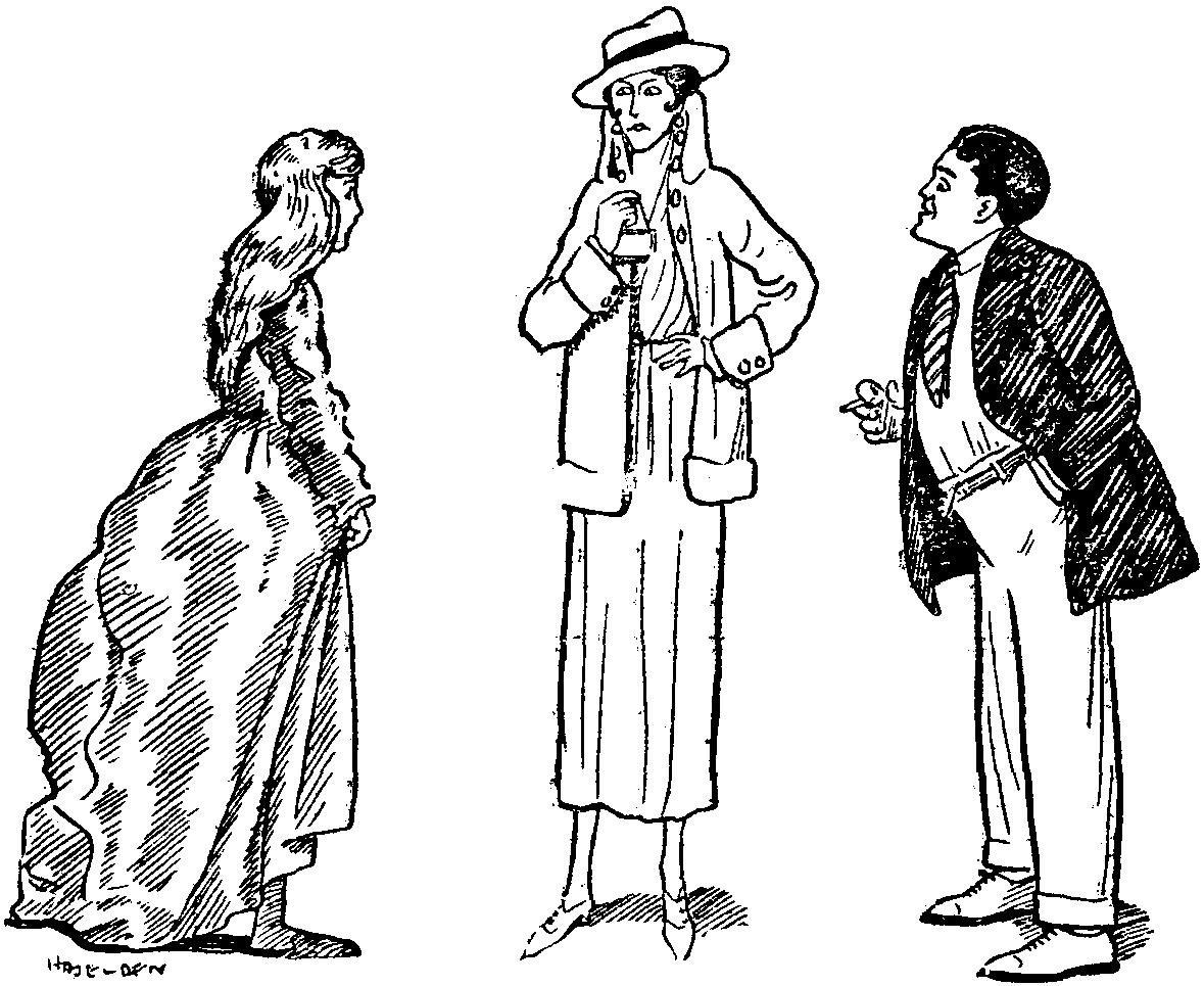 The stalwart with pearly teeth, lilac eyes and curly lashes is C3 at Lloyd's (Sir FRANCIS), and may be heard twice daily at the Frivolity singing, "My Goo-goo Girl from Honolulu" to entranced flappers; while the lad who has Fritzie D. Hun backed on the ropes, clinching for time, is usually gifted with bow legs, freckles, a dented proboscis and a coiffure after the manner of a wire-haired terrier.