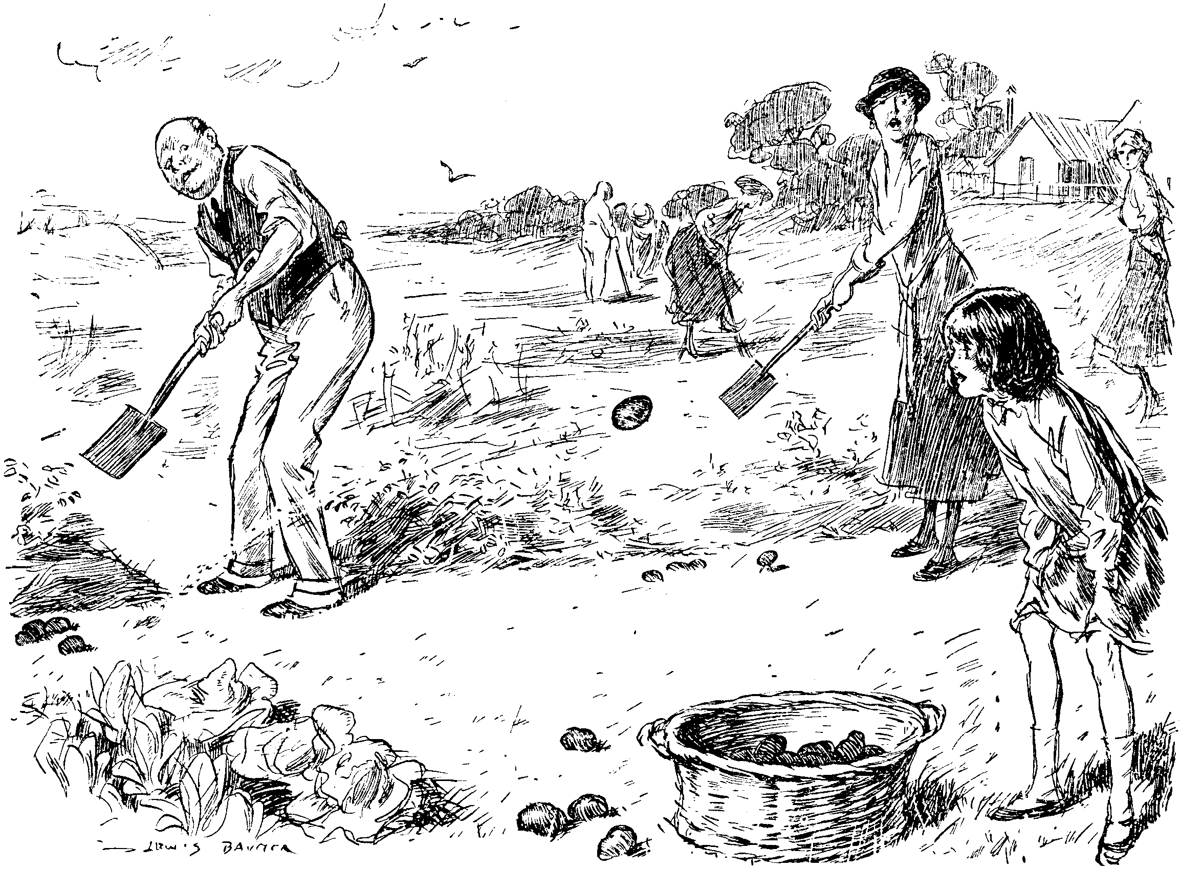 THE LINKS BEING DEVOTED TO ALLOTMENTS, MR. AND MRS. BUNKER-BROWNE PRACTISE APPROACH SHOTS, WITH THE IDEA OF FILLING THEIR BASKET WITH POTATOES AT THE SAME TIME.