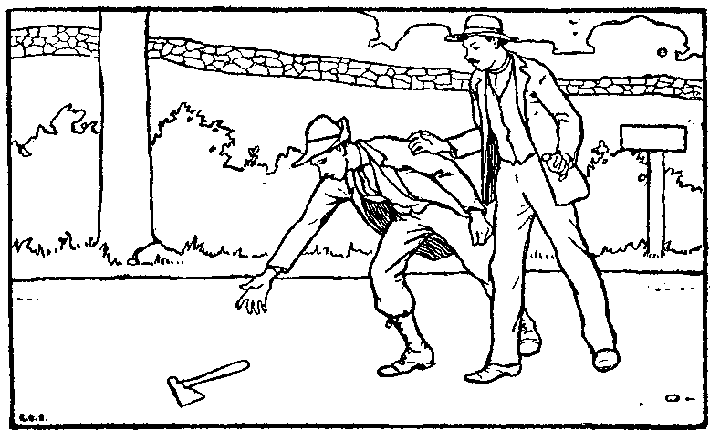 [The TWO TRAVELLERS journey along the road. A hatchet lies in the dust at one side.]1