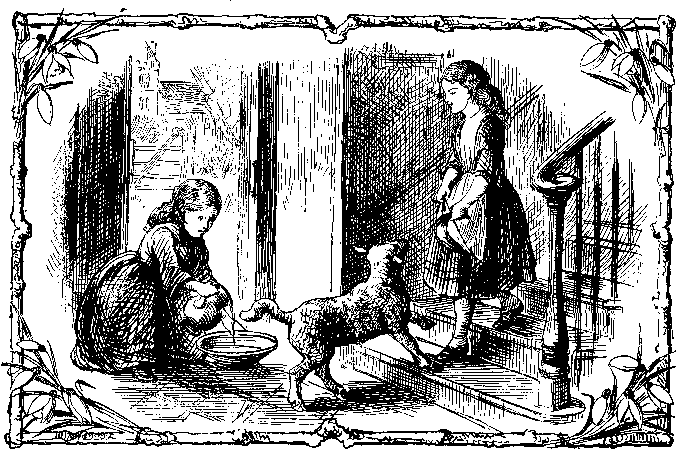 This lit-tle Lamb was brought to Nell The day its old ewe mo-ther died, And, now it knows and loves her well, It will not go from Nel-ly's side. A-long the hall, and up the stair, You hear its lit-tle pat-ter-ing toes: Her Pet will fol-low every-where A-bout the house, where Nel-ly goes. |