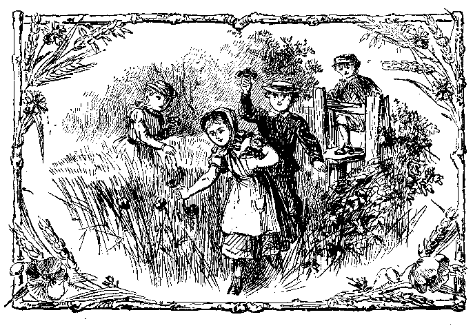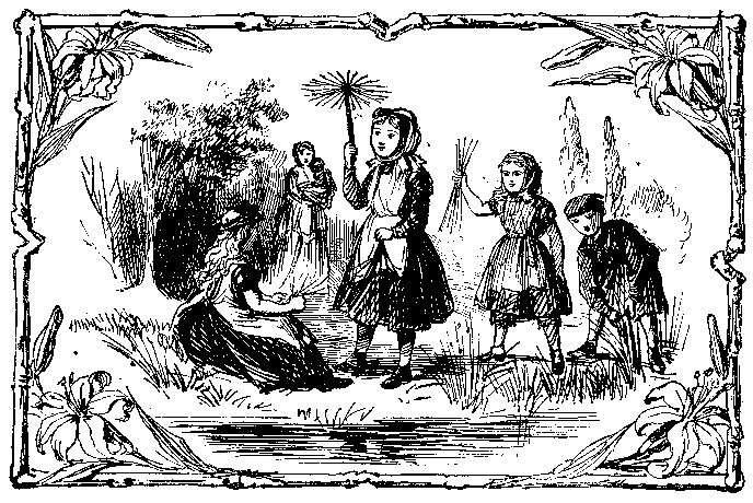 "Oh, come to the brook, sis-ter Kate, Oh, come with me, Het-ty and Gus, Where rush-es, so long and so straight, Are grow-ing in thou-sands for us!" Thus cries, to the rest, lit-tle May; And off to the mea-dow go all— For nurse has just shown her the way Of mak-ing a rush pa-ra-sol. |