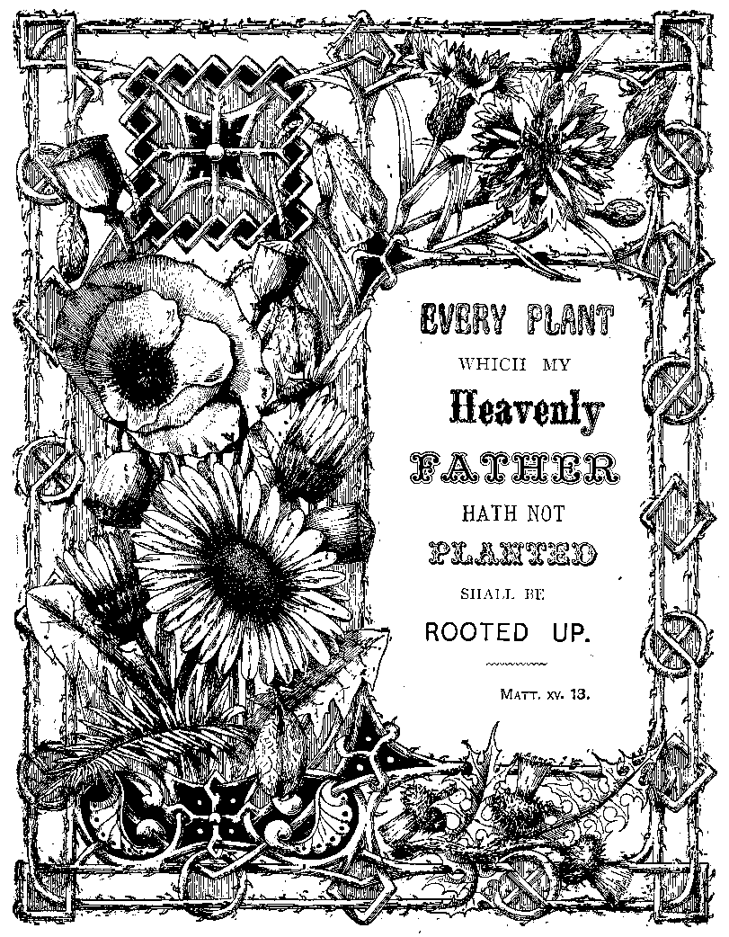Though in the corn that waves a-round Are thorns, and many hurt-ful weeds, That spring in e-ven good-ly ground And plant-ed thick with choic-est seeds; Though in our hearts, how-e-ver taught And trained to guard them-selves from sin, The good is mixed with evil thought Our en-e-my has sown there-in, God's plant-ing shall not be o'er-thrown By world-ly weeds that cling a-bout His corn; and what He hath not sown Shall in His time be root-ed out. Then, that our lives may yield their fruit, Still let it be our con-stant prayer, That God from out our hearts will root All seeds He hath not plant-ed there. |