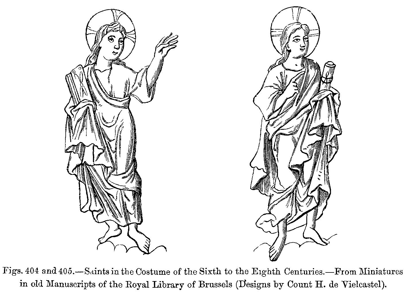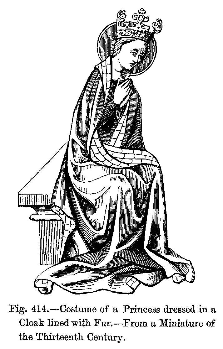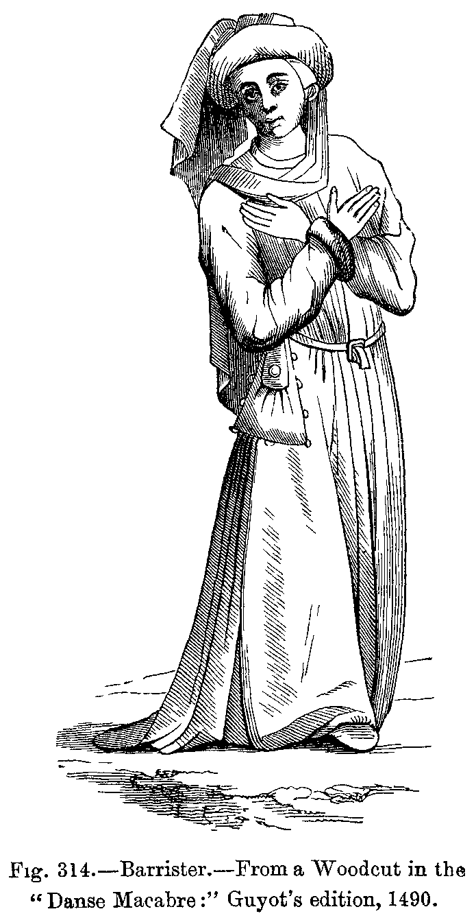 Influence of Ancient Costume.--Costume in the Fifteenth Century.--Hair.--Costumes in the Time of Charlemagne.--Origin of Modern National Dress.--Head-dresses and Beards: Time of St. Louis.--Progress of Dress: Trousers, Hose, Shoes, Coats, Surcoats, Capes.--Changes in the Fashions of Shoes and Hoods.--Livrée.--Cloaks and Capes.--Edicts against Extravagant Fashions.--Female Dress: Gowns, Bonnets, Head-dresses, &c.--Disappearance of Ancient Dress.--Tight-fitting Gowns.--General Character of Dress under Francis I.--Uniformity of Dress.