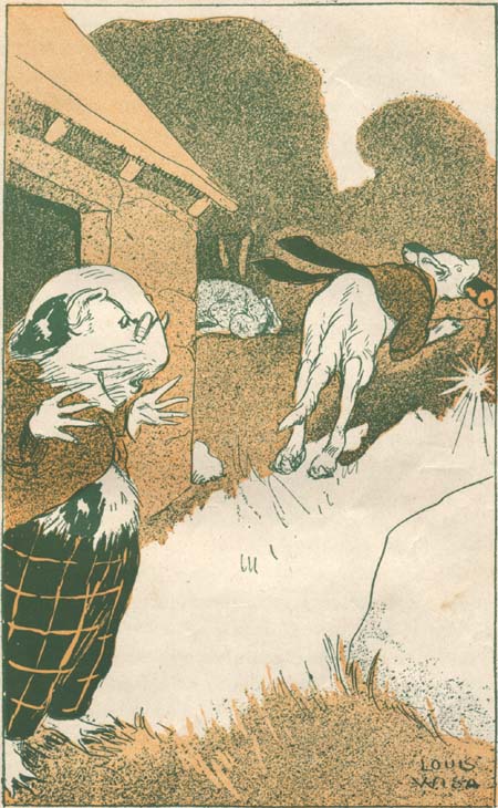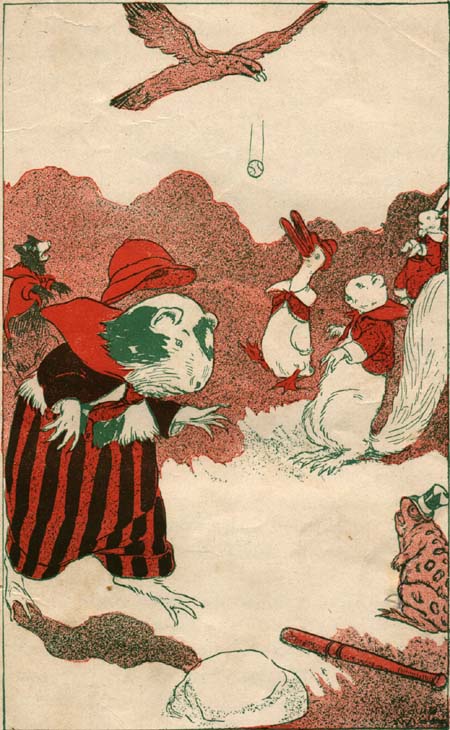 "I don't know," he replied, "but don't bother about it. We'll go and get that guinea pig." So they kept on, but just then the cabbage bounded over a little clod of dirt, went up in the air, and nearly hit Mr. Fox, and that scared him so that he ran away, and his wife ran after him.