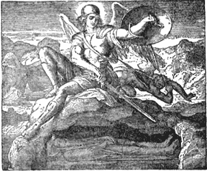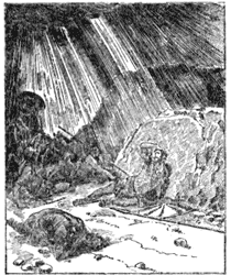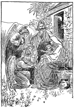 She took the little boy to the palace and named him Moses, and he became a great man among the Egyptians; he knew, however, that he belonged to the Hebrew race, and when he saw how badly his own people were treated, he tried to help them; but at last he was obliged to leave Egypt, and became a shepherd, taking care of the flocks of a priest called Jethro. He also married Jethro's daughter.
