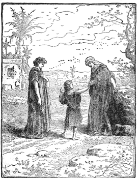 After they had been there a while Naomi's husband died, leaving her with the two sons. Then, by and by, the sons married, and their wives were very good to Naomi, and loved her. But it was only ten years before both of the sons died, and Naomi thought it was best for her to go back to her old home in Canaan; for she had been told that there was plenty in the land once more, and she wanted to see her own people and the relatives of her husband who was dead. So Naomi told her daughters-in-law to return to their own homes, because she could not expect them to be willing to leave everything for her sake.
