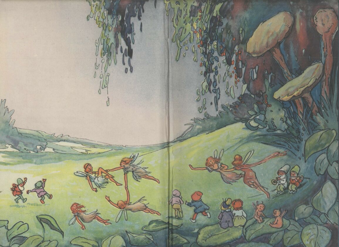 Eddie Elf laughed, Tilly and Timothy Toad chuckled, Gerty Gartersnake giggled, Wallie Woodpecker beat a tattoo on wood, Billie Bumblebee buzzed and Winnie Woodchuck sang a woodchuck song.