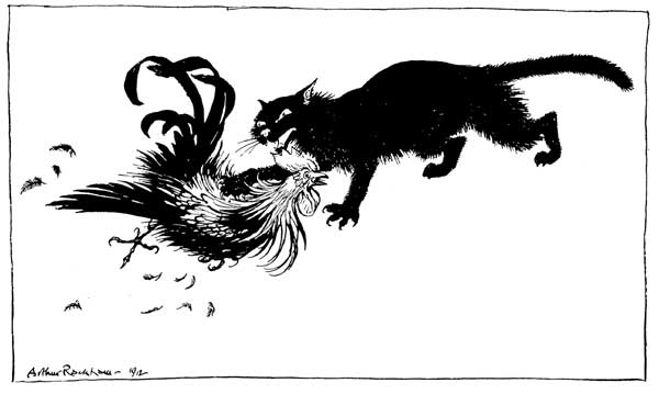 There was once a house that was overrun with Mice. A Cat heard of this, and said to herself, "That's the place for me," and off she went and took up her quarters in the house, and caught the Mice one by one and ate them. At last the Mice could stand it no longer, and they determined to take to their holes and stay there. "That's awkward," said the Cat to herself: "the only thing to do is to coax them out by a trick." So she considered a while, and then climbed up the wall and let herself hang down by her hind legs from a peg, and pretended to be dead. By and by a Mouse peeped out and saw the Cat hanging there. "Aha!" it cried, "you're very clever, madam, no doubt: but you may turn yourself into a bag of meal hanging there, if you like, yet you won't catch us coming anywhere near you."