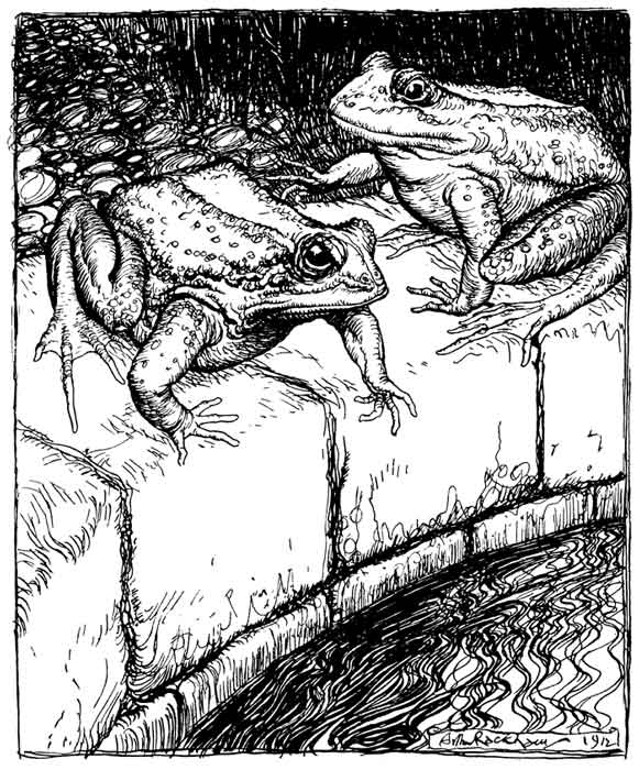 Some mischievous Boys were playing on the edge of a pond, and, catching sight of some Frogs swimming about in the shallow water, they began to amuse themselves by pelting them with stones, and they killed several of them. At last one of the Frogs put his head out of the water and said, "Oh, stop! stop! I beg of you: what is sport to you is death to us."