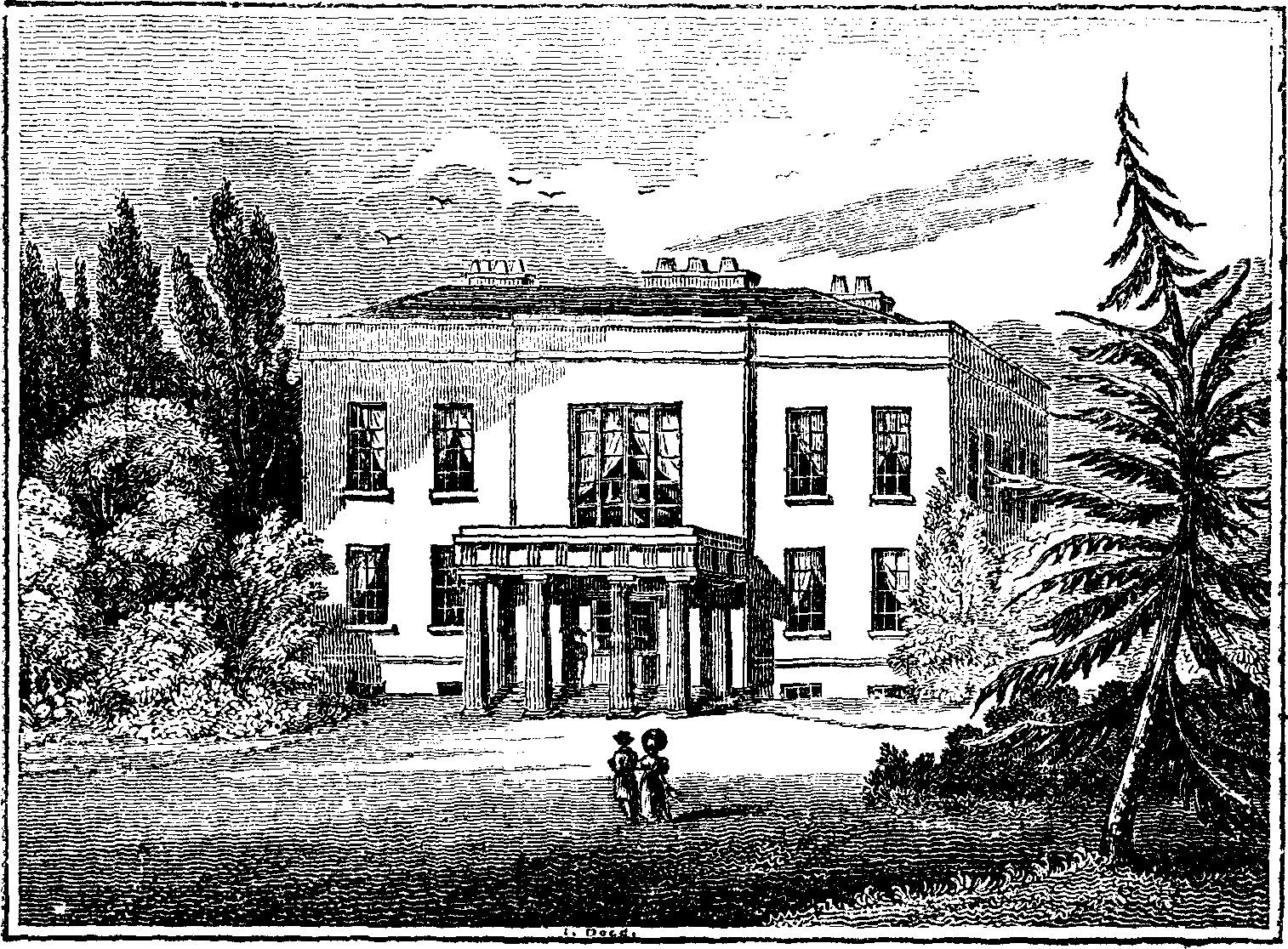 Laleham is delightfully situate on the banks of the Thames, between Shepperton and Staines, and is famed for the entertainment it affords to the lovers of angling. The river narrows considerably here; and about the shallows, or gulls, the water is beautifully transparent. The above temporary royal residence is built in an elegant villa style; and the grounds have been very tastefully laid out under the immediate direction of the present proprietor, the Earl of Lucan. They comprise 40 acres, with some very fine elm timber.