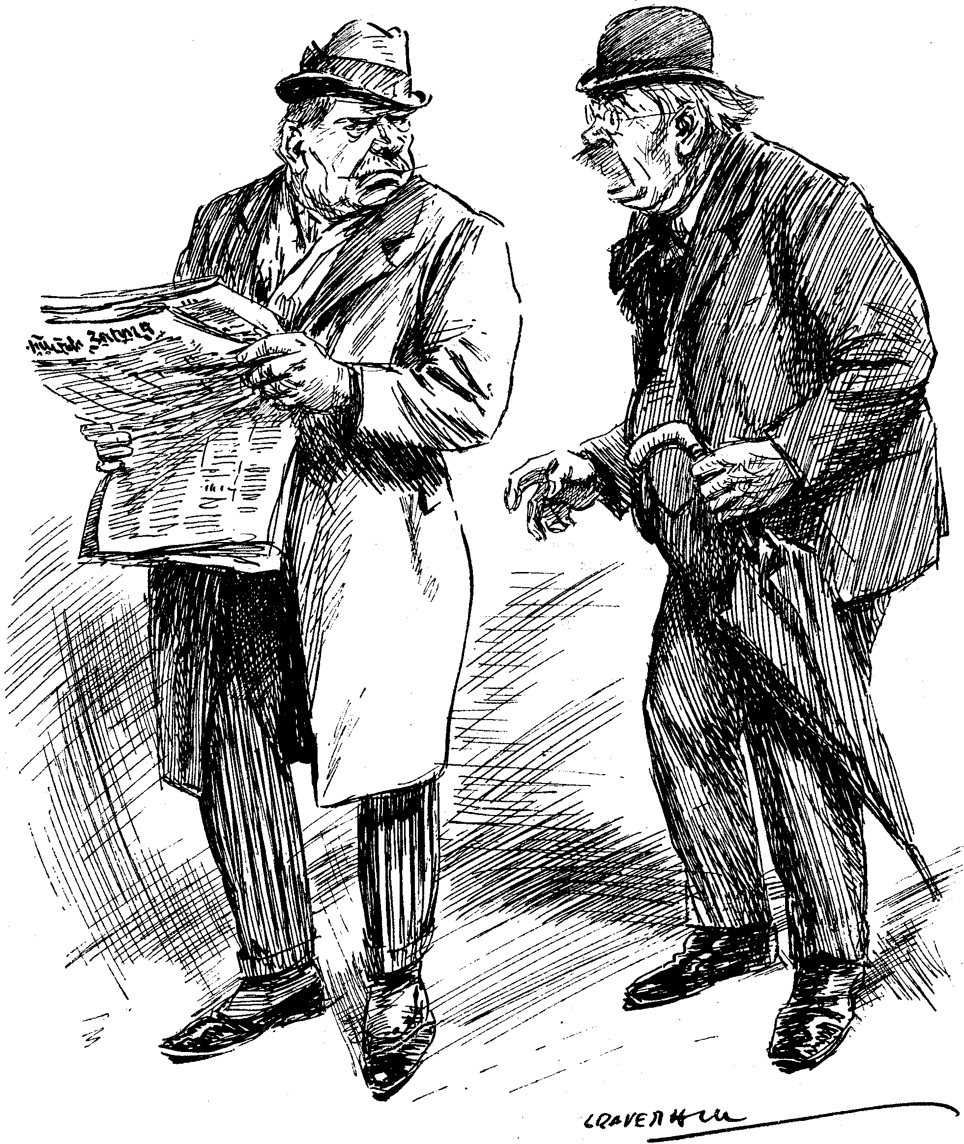 "There y'are," he snorted. "Just because I happened to have a full troop out for once, all my horses fit, no wire or trenches in the way, the burst of the season ahead and the only chance I've had in four and a-half years of doing a really artistic bit of carving they must go and stop the ruddy War. Poo! ain't that the bally Army all over? Bah! I've done with it."