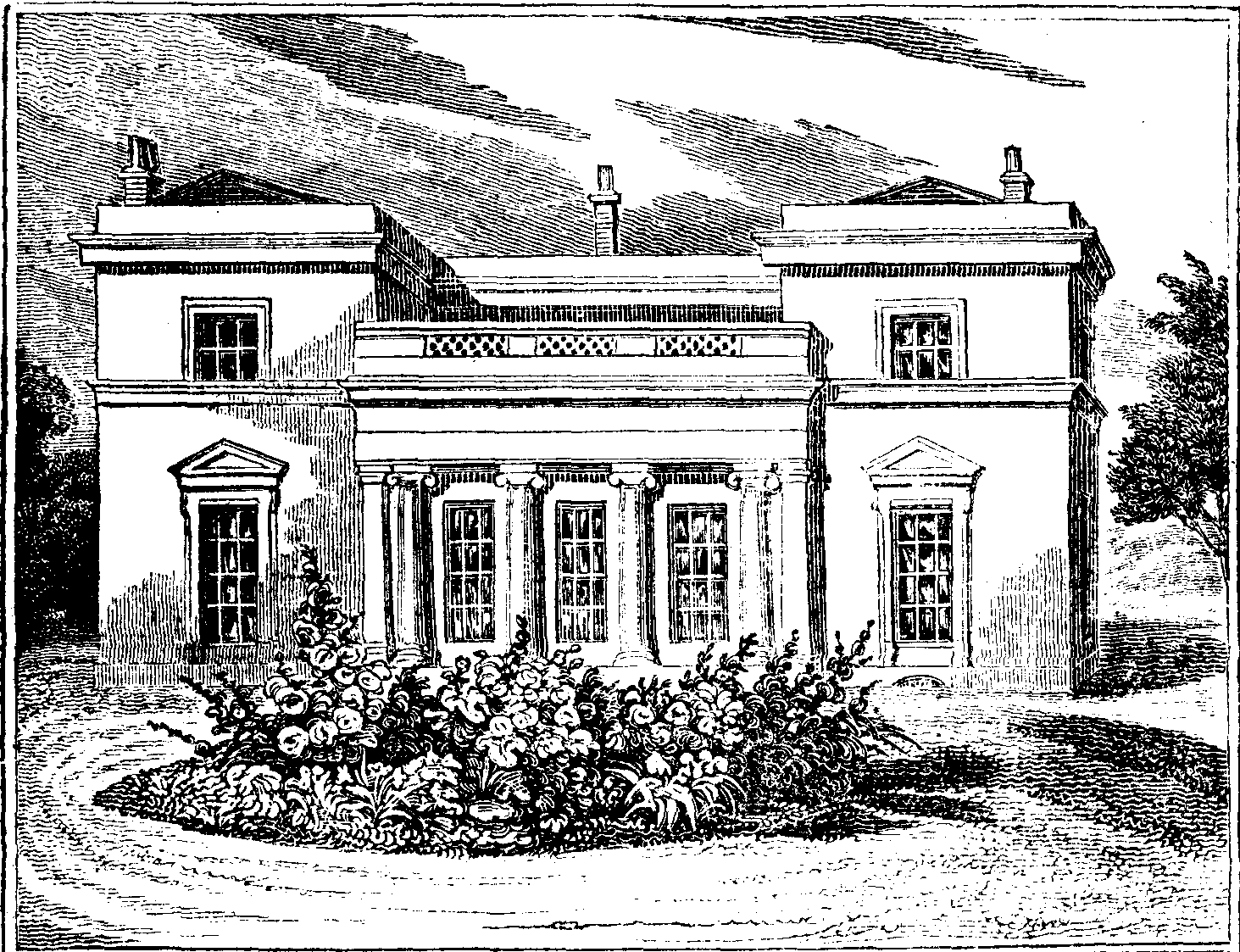 the residence of Colonel Sir Robert Arbuthnot, K.C.B. The architectural simplicity and beauty of this mansion can scarcely fail to excite the admiration of the beholder. The entrance is by a handsome portico; and the internal accommodations combine all the luxuries of a well-proportioned dining-room, and a splendid suite of drawing-rooms, extending above sixty feet in length, by eighteen feet in breadth. The upper story comprises nine chambers, bathing-room, dressing-rooms, &c.; and the domestic offices are in the first style of completeness.