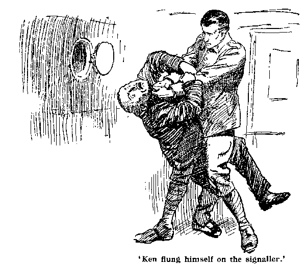 But the door was closed. Carrington had shut it behind him. Before the fellow could get it open, Ken was on his feet again, and had flung himself on the signaller.