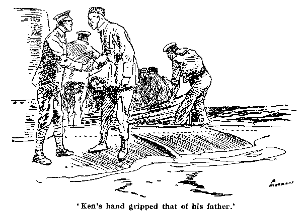 But the 'Cardigan Castle' was empty and deserted. With that marvellous speed which only perfect discipline ensures, every soul had already been got away into the boats. So far as he could see, Ken was left alone on the fast sinking ship.