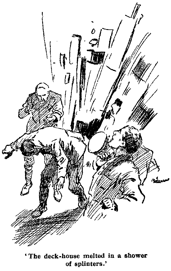 Before he could tighten his grip came a tremendous shock, and he was flung off the other as if by a giant's hand. As he rolled across the floor, followed a crash as though the very heavens were falling. The whole ship seemed to lift beneath him, at the same time stopping short as though she had hit a cliff.
