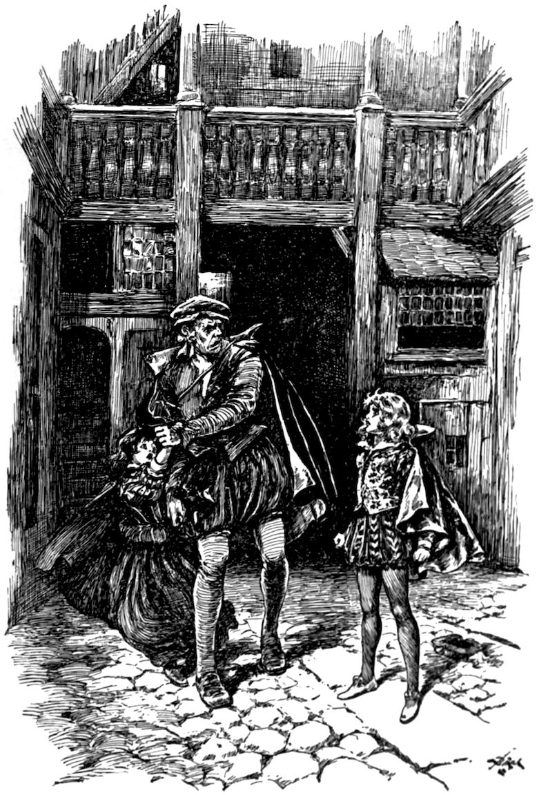 But Nick and Cicely said “Good-night, sirs,” to them all, and bowed; and Master Shakspere himself let them out at the gate, the others shaking Nick by the hand with many kind wishes, and throwing kisses to Cicely until they went out of sight around the chapel corner.