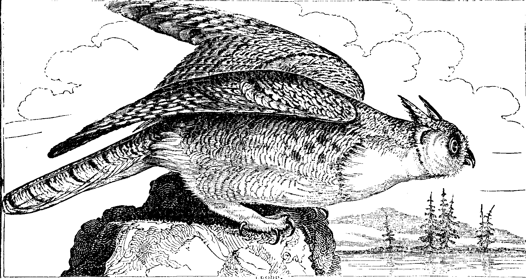 Dr. Richardson, with zealous attachment to his pursuits, passed seven summers and five winters surrounded by the objects he has described with such fidelity. He is, therefore, not a mere book naturalist, but he has studied the habits and zoological details of the living animals; Mr. Swainson having assisted the Doctor in the systematic arrangement and production of the plates. Their descriptions include all the birds hitherto found over an immense expanse of country of the 49th parallel of latitude, and east of the Rocky Mountains, which lie much nearer to the Pacific Coast than to the eastern shore of America: many of these birds being, for the first time, made known to ornithologists. We have selected two of the most singular in their conformation: one from the Owls, which are numerous and beautiful; and the other from the Grouse, of which ten fine species are described.2