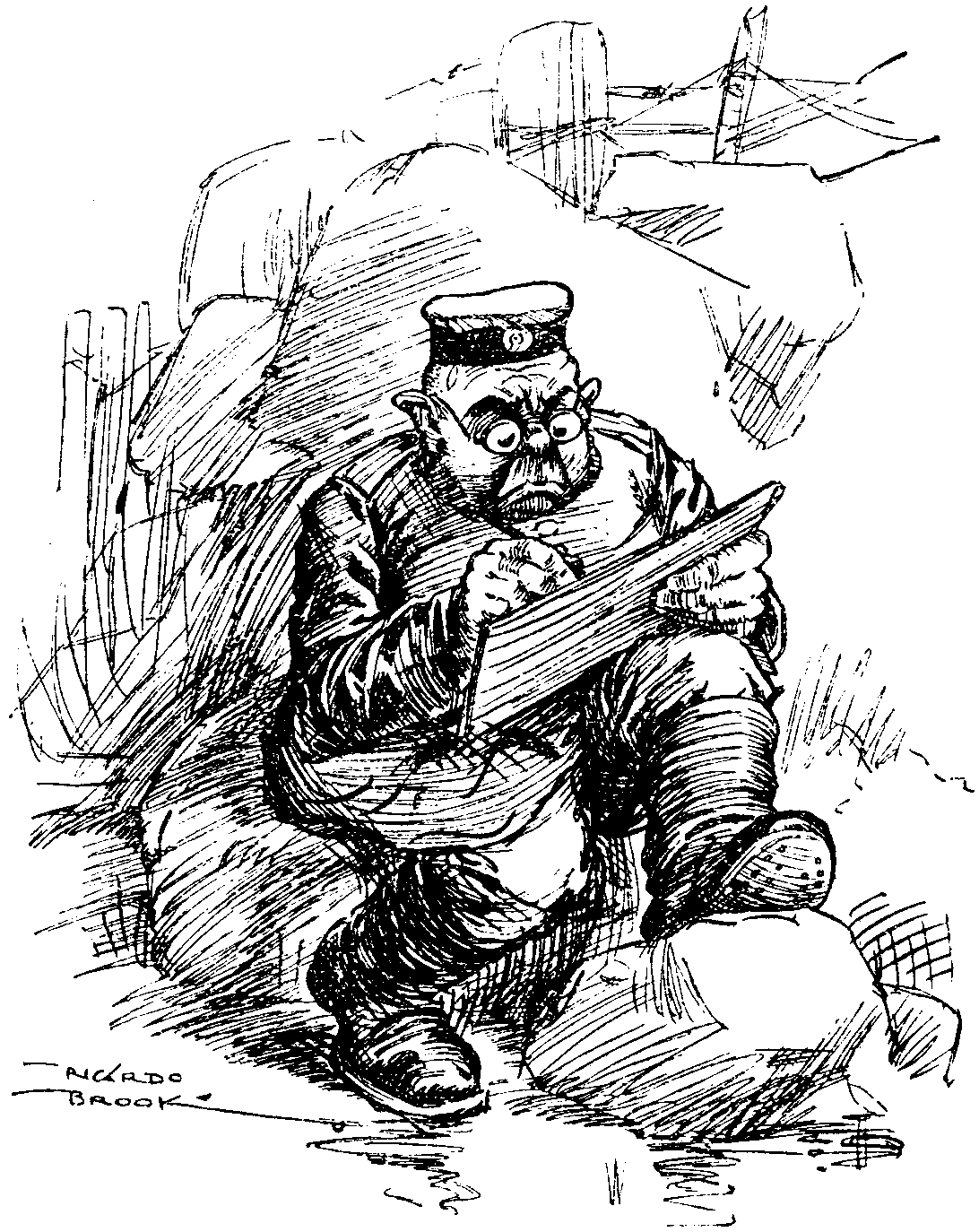His own modesty must preclude Mr. Punch from indicating those chapters in Soldier Men (LANE) that appear to him the most worthy of praise. But of course, if you specially want to know, a glance at the preliminary acknowledgments ... Anyhow, parental prejudice apart, these studies of military life, mostly on the Egyptian Front, form a sufficiently entertaining and interesting volume. In this war of many fronts and facets, literature seems a little to have deserted the desert; it is therefore good that a writer so well equipped as "YEO" should tell us a little of what our soldiers there are doing for the cause, the special variety of beastliness that they are enduring (to read the chapter called "Plagues of Egypt" is enough to make one seek out an English wasp and embrace it with tears of affection), and the courage and humour that support them in their task. Something more than this, too; the wholly illogical and baffling humanity that—one likes to think—helps to differentiate the British fighting man, and must surely cause certain European people such bewildered qualms, if they ever hear of it. Read, for example, that grim and moving story of the Corporal who thought shooting was too good for Bedouin rebels, and what he actually did to a family of them who interrupted these reflections. But I forgot; this is one of the chapters that I was not going to mention.