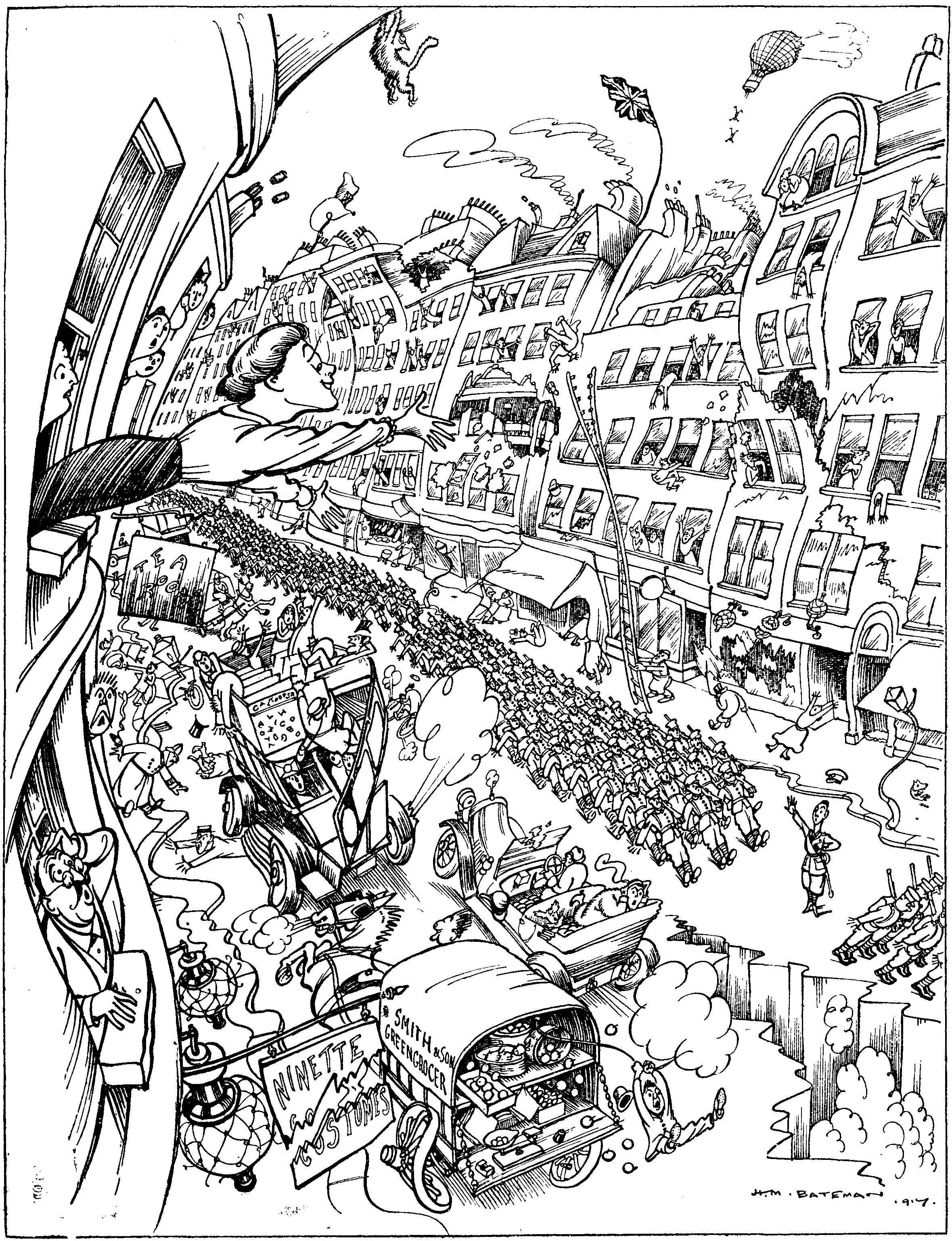 The Project Gutenberg EBook of Punch, July 18, 1917, by Various This eBook is for the use of anyone anywhere at no cost and with almost no restrictions whatsoever. You may copy it, give it away or re-use it under the terms of the Project Gutenberg License included with this eBook or online at www.gutenberg.org Title: Punch, July 18, 1917 Author: Various Release Date: March 19, 2004 [EBook #11638] Language: English Character set encoding: ASCII *** START OF THIS PROJECT GUTENBERG EBOOK PUNCH, JULY 18, 1917 *** Produced by Jonathan Ingram, William Flis, and the Online Distributed Proofreading Team.