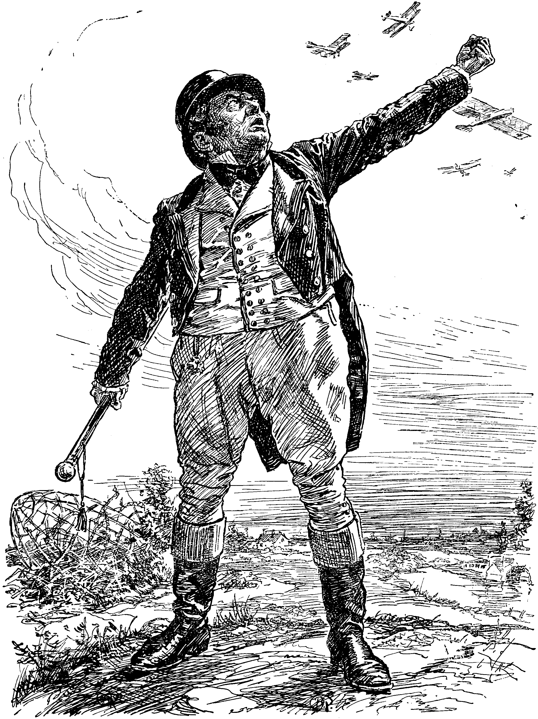 The policy of air reprisals advocated by a section of the Press has found much support. Indeed one prominent pacifist has even threatened to put out his tongue at the next covey of enemy aeroplanes which visits this country.