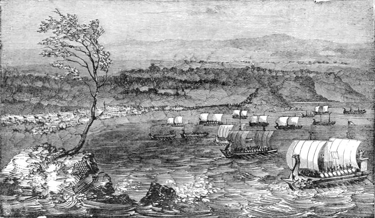 On the opposite side of Asia Minor, that is, on the southern shore, there was a wild and mountainous region called Cilicia. The great chain of mountains called Taurus approaches here very near to the sea, and the steep conformations of the land, which, in the interior, produce lofty ranges and summits, and dark valleys and ravines, form, along the line of the shore, capes and promontories, bounded by precipitous sides, and with deep bays and harbors between them. The people of Cilicia were accordingly half sailors, half mountaineers. They built swift galleys, and made excursions in great force over the Mediterranean Sea for conquest and plunder. They would capture single ships, and sometimes even whole fleets of merchantmen. They were even strong enough on many occasions to land and take possession of a harbor and a town, and hold it, often, for a considerable time, against all the efforts of the neighboring powers to dislodge them. In case, however, their enemies became at any time too strong for them, they would retreat to their harbors, which were so defended by the fortresses which guarded them, and by the desperate bravery of the garrisons, that the pursuers generally did not dare to attempt to force their way in; and if, in any case, a town or a port was taken, the indomitable savages would continue their retreat to the fastnesses of the mountains, where it was utterly useless to attempt to follow them.