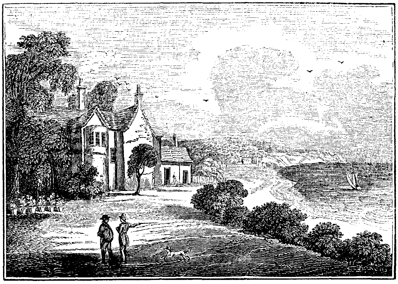 About half a mile from the Fort is Sandown Cottage, formerly the elegant retreat of the celebrated John Wilkes, the chief star in the political horizon, during the administration of the Earl of Bute. The cottage is situated as the Engraving shows, near the shore of Sandown Bay, which extends about six miles, the eastern extremity being terminated by the chalky cliffs of Culver, and the south-western by the craggy rocks of the mountainous part of Dunnose. The house is small, and has been elegantly fitted up; in the gardens were some detached and pleasant apartments, constructed with floorcloth of Kensington manufacture. But the labours of Wilkes's retirement have been swept away, and there is scarcely a relic