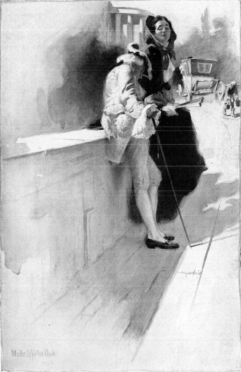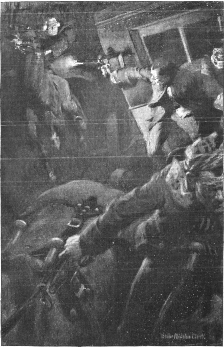 'Sooner, by--!' cried the third traveller, a saturnine, dark-faced man of thirty-four or more, who sat with his back to the horses, and toyed with a pistol that lay on the seat beside him. 'I'm content if your lordship is.'