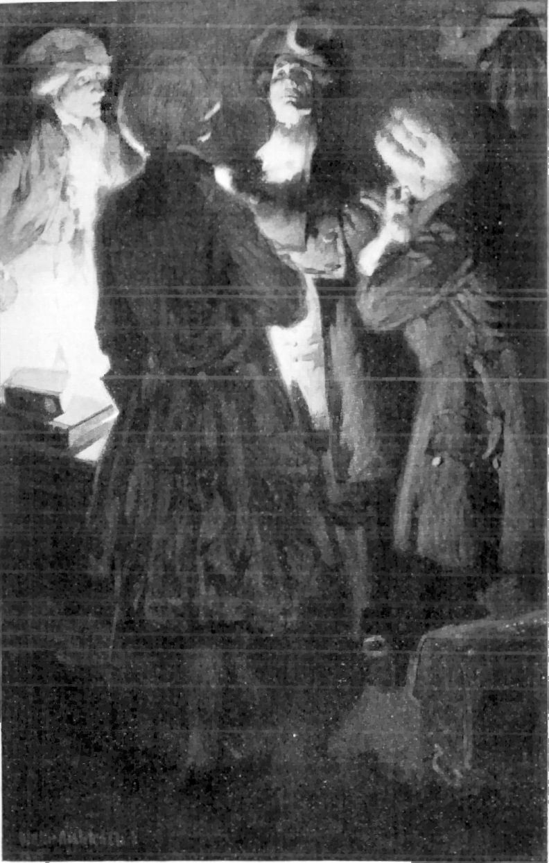 'Wait a minute,' was the answer; and in a twinkling Soane was out, and was ordering the servant, who had climbed down, to close the door. This effected, he strode back along the road to a spot where a figure, cloaked, and hooded, was just visible, lurking on the fringe of the lamplight. As he approached it, he raised his hat with an exaggeration of politeness.