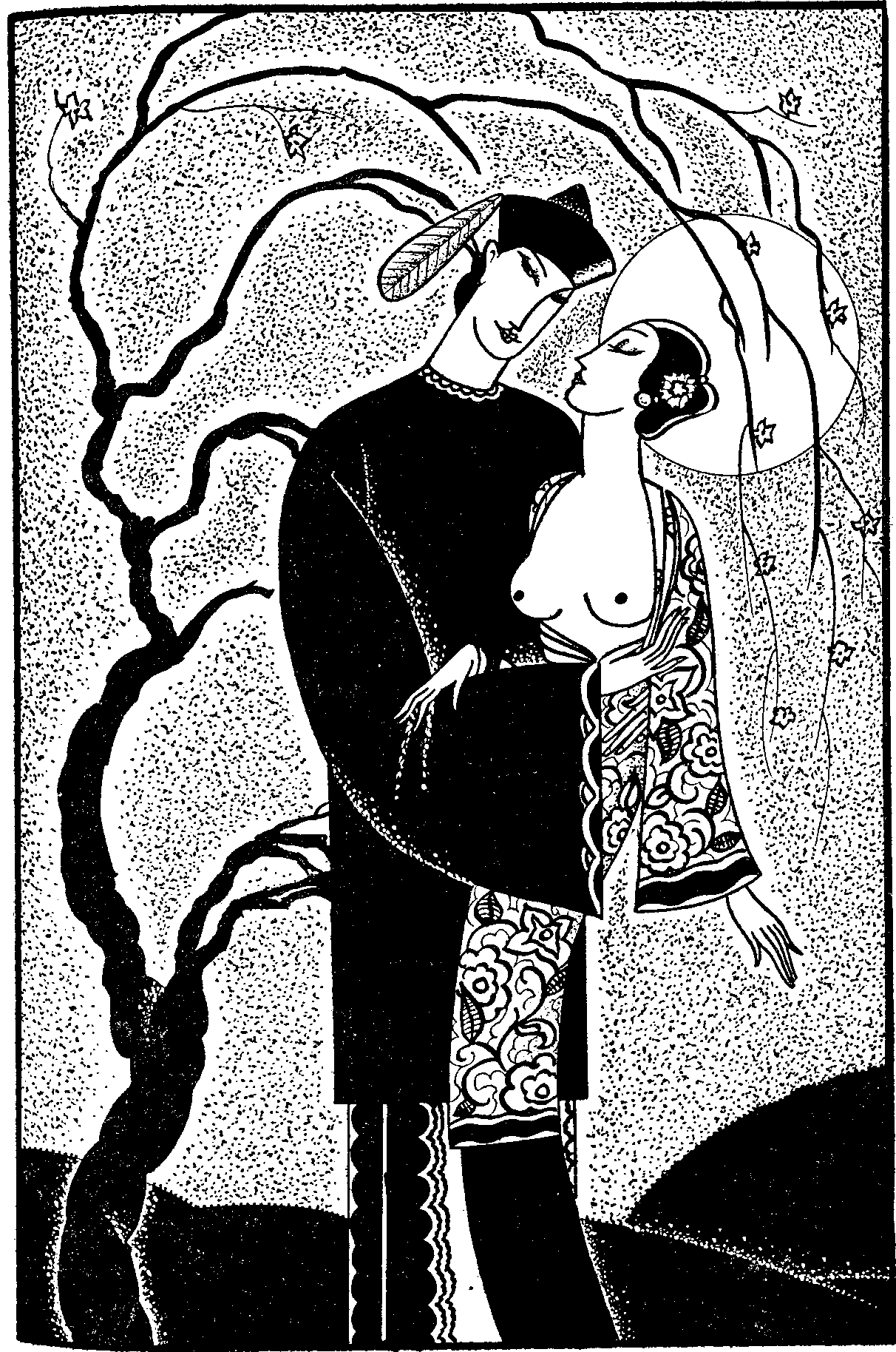 It must be said that never, in the young passions of his life, had Li Chia experienced the pain of beauty; but, when he saw Shih-niang, emotion was awakened in him, and the feelings of a flowering willow filled his breast. He himself was gifted with rare beauty, and a sweet and gentle nature. He spent his money recklessly, with an unbridled zeal for bestowing gifts. For this reason he held a double attraction for Shih-niang, who considered that falsehood and avarice were opposed to rectitude, and had also by this time made up her mind to return to a life of honor. She appreciated Li Chia's gentleness and generosity, and was drawn toward him. But he was afraid of his father and did not dare to marry her at once, as she wished. Their love was not, on that account, any the less tender. In the joys of dawn and the pleasures of twilight they kept together as do husband and wife, and in their vows they compared their love with the Ocean or with the Mountain, recognizing no other vital motive. In truth: