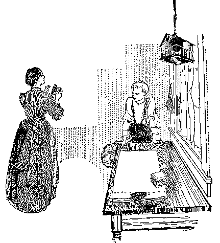 "Henry," asked Miss Morgan, as she surveyed the debris of Henry's Sunday clothes, and her womanly wrath for the destroyer of them began to boil, "Henry, now tell me honestly, is this little boy telling the truth? Now, don't you story to me, Henry."