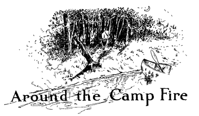 There is another side to the camp fire: the genial comradery of its cheery blaze, after the supper is over and the pipes lit, which invites stories of the day's catch. The speckled beauties are exhibited, lying side by side on the damp moss at the bottom of the basket. The tale is told of repeated casts, under the overhanging boughs, in the shadow of the big rock, where the water swirls and rushes: how the brown hackle went skittering over the pool, or dropped as lightly as thistledown on the edge of the riffle, the sudden rise to the fly, the rush for deep water, of the strain on the rod when it throbbed like a thing of life, sending a delicious tingle to the finger tips, the successful battle, and the game brought to the net at last.