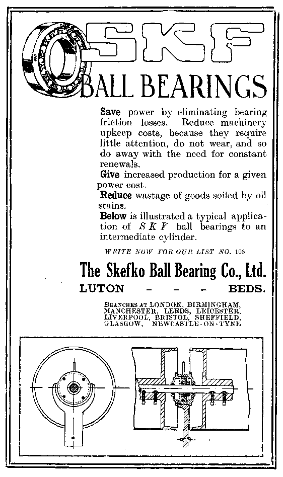 Advertisement: THE SKEFKO BALL BEARING CO., LTD.